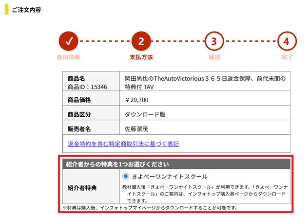 ※ 下記のように、紹介者特典として「きよぺーワンナイトスクール」が