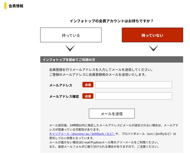 インフォトップのアカウントを作成します。